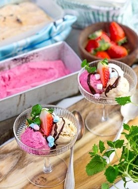 Vispa grädden lätt (inte helt fast) och vispa sedan samman den med bärsmeten. Ställ bunken i frysen, ta ut den varje halvtimme och vispa kraftigt i smeten. Upprepa proceduren tills glassen fått mjukglasskonsistens. Lägg då glassen i en iskall burk och ställ in den i frysen.